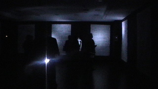 Στην δεύτερη αίθουσα της έκθεσης κυριαρχεί το απόλυτο σκοτάδι, ενώ από τους τοίχους κρέμονται 12 χαρτιά, διαστάσεων 130 επί 200 cm, με κείμενα διαφορετικής φύσεως, σε ελληνικά ή αγγλικά, πεζά ή ποιήματα , υπογεγραμμένα ή ανυπόγραφα, με κοινό παρονομαστή όμως την ιδέα της 'Απουσίας' που άλλωστε διέπει ολόκληρη την έκθεση. Για να περιδιαβεί κανείς τον χώρο προμηθεύεται έναν φακό τον οποίο χρησιμοποιεί και για να μπορέσει να διαβάσει τα κείμενα στο σκοτάδι. Το φως αυτό όμως κάθε φορά που στρέφετε πάνω σε ένα χαρτί ενεργοποιεί την ηχογραφημένη ανάγνωση του κειμένου που έχει γίνει από τον ίδιο άνθρωπο που και το έχει γράψει . Μα καθώς ο κάθε θεατής που βρίσκεται στο χώρο επιλέγει να φωτίσει –κυριολεκτικά και μεταφορικά- μια ιστορία, το αποτέλεσμα θα είναι διαφορετικό κάθε φορά και η διαφορετικότητα αυτή θα εξαρτάται από το πλήθος των επισκεπτών και την συμπεριφορά τους. Εάν υποθέσουμε ότι μέσα στην αίθουσα βρίσκεται ένας επισκέπτης θα ακούγεται μόνο μία φωνή- αφήγηση. Εάν βρίσκονται περισσότερα άτομα το αποτέλεσμα θα είναι ένα πλήθος ανακατεμένων φωνών που αγνοώντας η μία την άλλη 'πασχίζουν' να ακουστούν, κάνοντας τον θεατή να καταβάλει προσπάθεια για να συγκεντρωθεί στο κείμενο που έχει επιλέξει και να κατανοήσει το νόημά του. Όσο τα κείμενα δε αποκαλύπτονται και τέλος δεν αποκωδικοποιούνται από τους επισκέπτες, ο λόγος και η γραφή παραμένουν απόντα. Με αυτή την διάδραση ο θεατής γίνεται πια αναπόσπαστο μέρος του έργου.